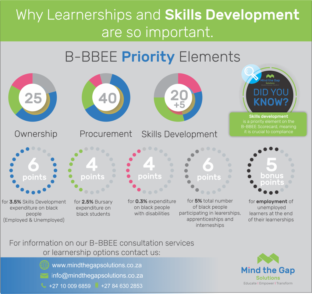 Mind the Gap Solutions offers BBBEE advisory, design and implementation, Employment Equity Consultation, Skills Development Facilitation services, Skills Development and Training, Soft Skills Training, Psychometric Assessments and Recruitment Services.